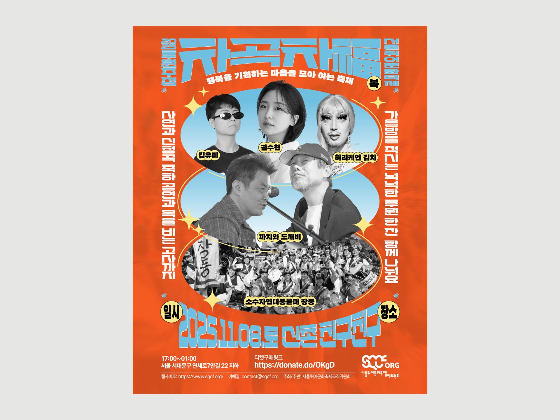 올해 서울퀴어문화축제 다녀온 사람 있나요? 아니면 가보고 싶었는데 일정이 맞지 않아 놓친 사람은요? 서울퀴어문화축제를 응원하고 지지하는 독자들, 주목하세요. 내년도 서울퀴어문화축제 개최를 위한 기반을 마련하기 위해 후원주점이 열립니다. 후원주점의 이름은 ‘차곡차복(福)’. 먹을거리·마실거리·볼거리·놀거리로 풍성한 후원주점에서 행복한 마음과 기원하는 마음을 차곡차곡 모아 내년 축제를 함께 만들어 갈 힘을 가득 채우자는 의미예요. 이번 후원주점은 마치 라디오 프로그램처럼 실제 사연과 신청곡을 토대로, DJ의 진행과 음악 공연이 어우러진 구성으로 진행될 예정이에요. 단순한 후원 행사가 아니라 서울퀴어문화축제 주최측과 후원 방문객들이 함께 어우러진다는 데서 의미 있죠. 이에 따라 김유미 활동가가 DJ로 진행을 맡고, 배우 권수현, 듀오 그룹 까치와 도깨비, 드랙퀸이자 만능 엔터테이너 허리케인 김치가 출연합니다. 무엇보다 후원주점 방문자들 대상으로 글로벌 섹슈얼 웰니스 브랜드 위바이브를 선물로 드리는 깜짝 이벤트도 만나볼 수 있다는 사실! 차곡차복은 오는 8일 오후 5시부터 서울 신촌 친구친구에서 열리며, 링크에서 후원 티켓을 구매할 수 있어요.
